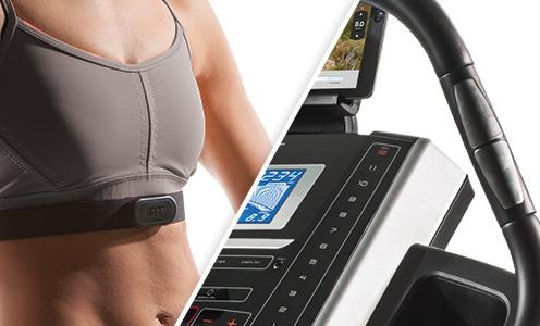 • Двухконтактный монитор сердечного ритма EKG™ и нагрудная лента Polar. Получайте максимум пользы от каждого занятия, следя за своим сердечным ритмом с помощью датчиков, встроенных прямо в поручни, или нагрудного датчика Polar, имеющегося в комплекте.