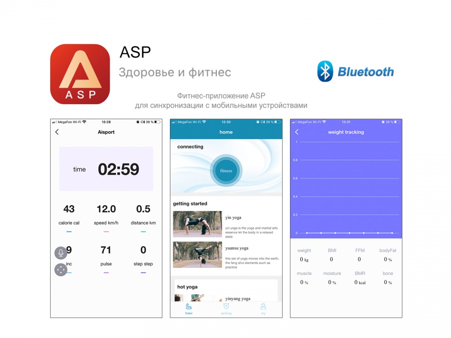 Спецификации программ 3 ручной режим , 12 автоматических профилей, BODY-FAT программа, фитнес приложение ASP для синхронизации с мобильным устройством