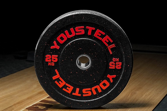 Диск 25кг, каучуковый, тренировочный, черный YouSteel