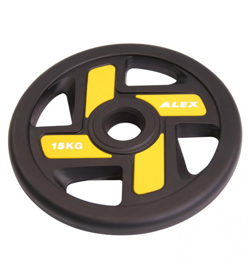 Диск полиуретановый Alex P-TPU-15K c хватами 51 мм 15 кг, желтый