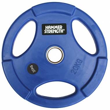 Диск олимпийский, цветной, обрезиненный, с 3-мя хватами, d51мм Hammer WP074, 20кг, синий