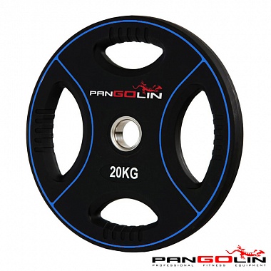 Диск олимпийский уретановый с 4-мя хватами d51мм Pangolin X-Line WP012PU 20кг черный с синими полоса