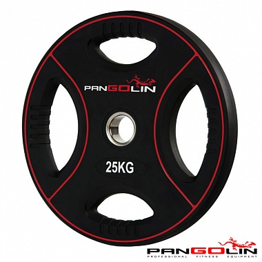 Диск олимпийский уретановый с 4-мя хватами d51мм Pangolin X-Line WP012PU 25кг черный с красными поло