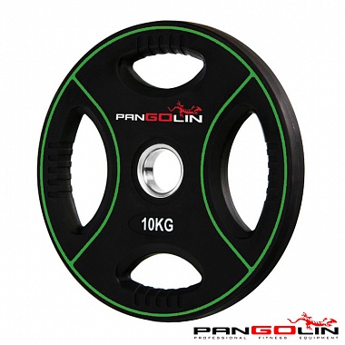 Диск олимпийский уретановый с 4-мя хватами d51мм Pangolin X-Line WP012PU 10 кг черный с зелеными пол