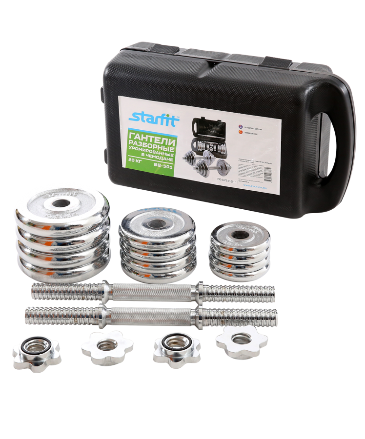 Гантели хромированные BB-501, разборные, в чемодане, 2 шт. по 10 кг