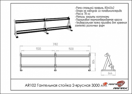 Гантельная стойка ARMS двухярусная AR102