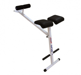 Навесной элемент используемый в комплексе с лестницей «Элит». Основное положение - гиперэкстензия горизонтальная. Гиперэкстензия позволяет выполнять комплексы упражнений на прямые мышцы спины. Гиперэкстензия оснащена голеностопным упором из мягкого полиуретана. Основа подушек многослойная фанера (15 мм), в качестве наполнителя используется поролон устойчивый к усадке, покрытый высококачественной искусственной кожей различных цветов.