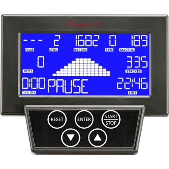 Гребной тренажер Ammity ORM 4000 - это тандем качественной биомеханики и аэромагнитной системы сопротивления с электронным управлением. Правильные широкие гребки и плавное скольжение обеспечивают удлиненный алюминиевый трек и высококачественные подшипники седла, дополнительное аэро-сопротивление сглаживает рывки и помогает сохранять ритмичный ход в течении всей тренировки, создавая эффект естественной гребли на воде. Прочная рама, качественные комплектующие и фурнитура обеспечивают высокую надежность конструкции плюс легкая система складывания для компактного хранения и перемещения. В целом этот тренажер обеспечивает эффективные тренировки практически на все группы мышц , формирует правильный красивый мышечный каркас и осанку, тренирует кардио-систему и дыхание. Конструкция допускает эффективные тренировки высокой интенсивности пользователям до 150 кг. Эргономика конструкции рассчитана для пользователей ростом от 1,5 до 2 м. Качественный синий LCD дисплей 5” и удобное управление позволяют легко выбрать и настроить необходимые параметры тренировки. Программный пакет включает разносторонние тренировки на повышение выносливости, координации и баланса, соревнования с виртуальным соперником для улучшения техники, поддержания физической формы и здоровья.