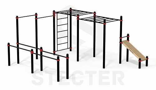 комплекс  из сдвоенных брусьев, турника, шведской стенки, двух рукоходов и наклонной лавки (paw-61)
