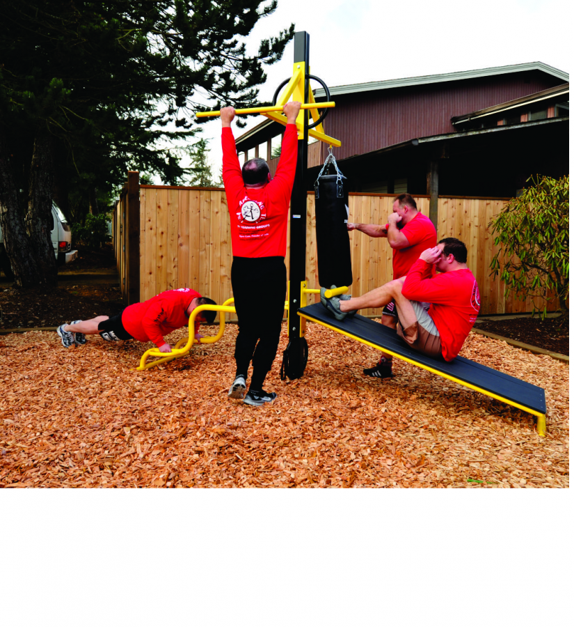 Оптимальный комплект оборудования для занятий спортом на открытом воздухе. Включает следующий набор тренажеров: Турник, Кронштейн для боксерского мешка (мешок в поставку не входит), скамья для пресса, упоры для отжиманий, петли для крепежа резиновых тяг или строп.