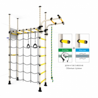 Самый функциональный комплекс — габариты позволяют разместить любое навесное оборудование, переставлять его, менять местами, создавая каждый день новые площадки для активных игр. С таким ДСК о здоровье и досуге детей можно не беспокоиться. Крепится враспор между полом и потолком это очень удобно тем, что подходит для любых стен, и комплекс просто собрать и установить. Большой плюс этой конструкции в том, что ее можно передвигать с места на место, выбирая самый оптимальный для вас вариант. Но потолок не должен быть из хрупких материалов, таких как вагонка или гипсокартон(навесные потолки), для них лучше подойдут пристенные модели.