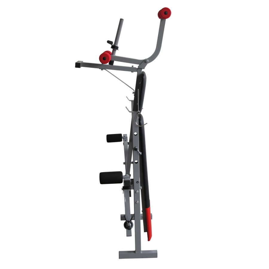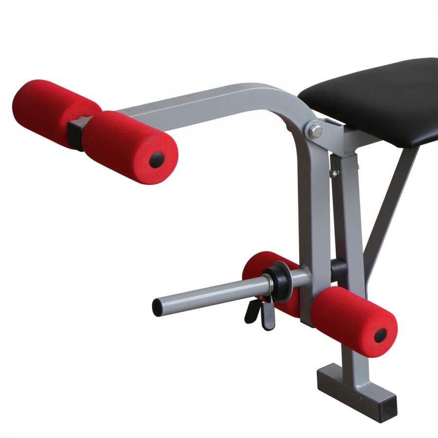 Прочная устойчивая конструкция с ударопрочным эмалевым покрытием. Рычаги блока для ног снабжены мягкими валиками. Позволяет выполнять упражнения: жим лежа, сгибание и разгибание ног в коленном суставе, баттерфляй. В качестве нагрузки используются диски диаметром 26 мм. Штанга и диски в комплект не входят.
