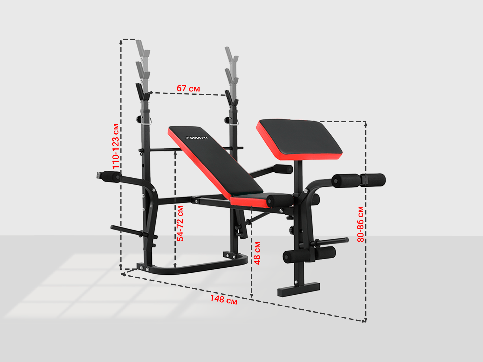 Плюсы универсальной силовой скамьи со стойками UNIX Fit BENCH 120P: