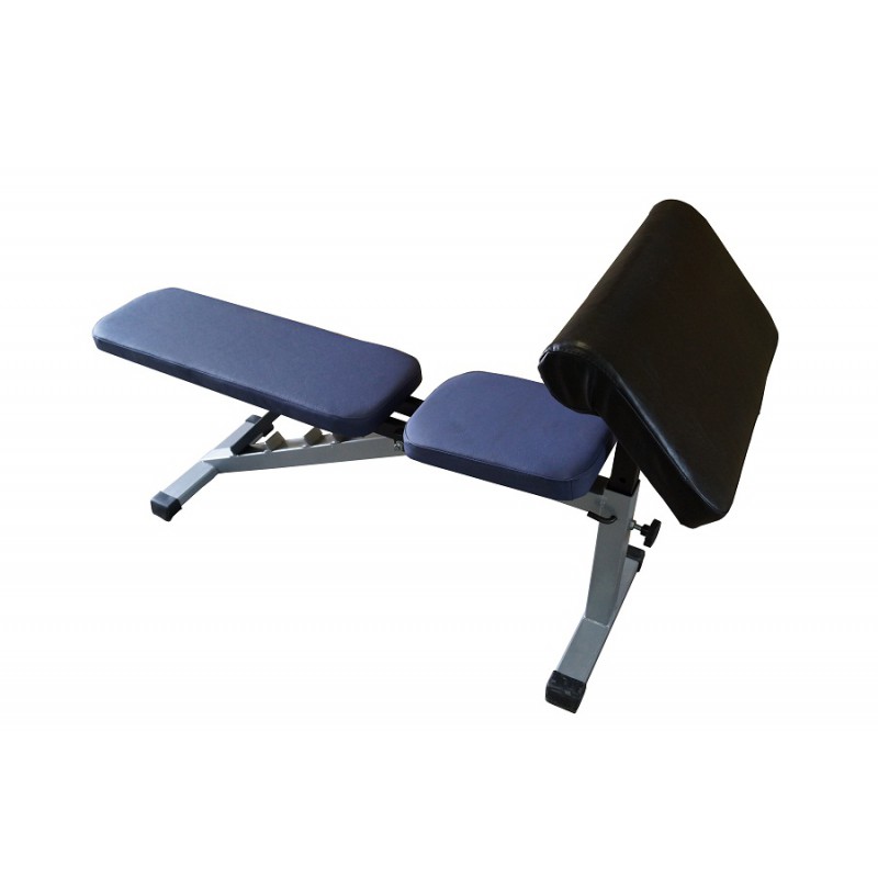 • Дополнительные возможности. Для того, чтобы установить скамью в режим тренировки пресса, необходимо привести сиденье и спинку в соответствующее положение и установить дополнительную опцию – упор для пресса. Для создания бицепс-машины – необходимо вставить в секцию парту для бицепса. Высоту парты можно регулировать под собственные потребности. Это качество позволяет удобно тренироваться спортсмену любой комплекции. Дополнительная опция "тренажер для ног" позволяет тренировать как переднюю, так и заднюю поверхность бедра. Для того, чтобы изменить область воздействия достаточно опустить спинку и лечь на живот. Все валики достаточно широкие и мягкие – не пережимают сосуды при работе даже с большими весами.
