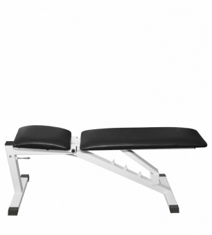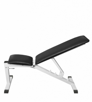 У данной скамьи в одно движение меняется угол наклона: выставляйте положительный или отрицательный угол в пределах 60 градусов, чтобы добиться от "Барса" максимальной пользы для каждого конкретного упражнения. Наклоняется и сидение, и спинка устройства.