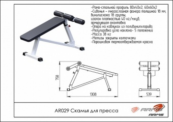 Скамья для пресса регулируемая ARMS AR029