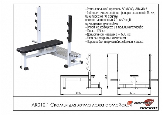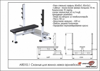 -Скамья для жима лежа армейская ARMS AR010.1