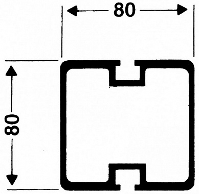 Стойки алюминиевые, многофункциональные, квадратные (8х8 см), установка в стаканы глубина 35 см Hasp