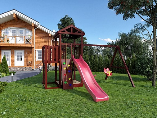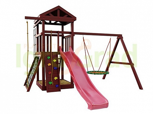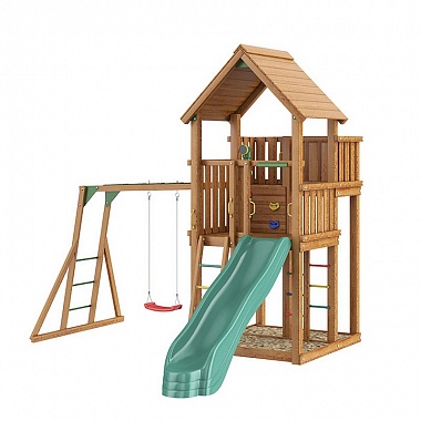 Деревянная детская площадка для дачи Igragrad Панда Фани с балконом и сеткой
