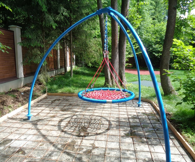 качели-гнездо на трех опорах