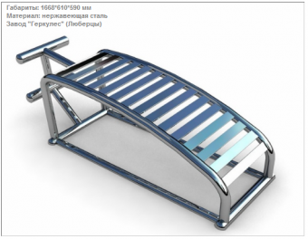 Конструкция имеет радиальные загибы (округление), выполненные для увеличения прочности конструкции. В комплект тренажера входит элемент закладного фундамента.