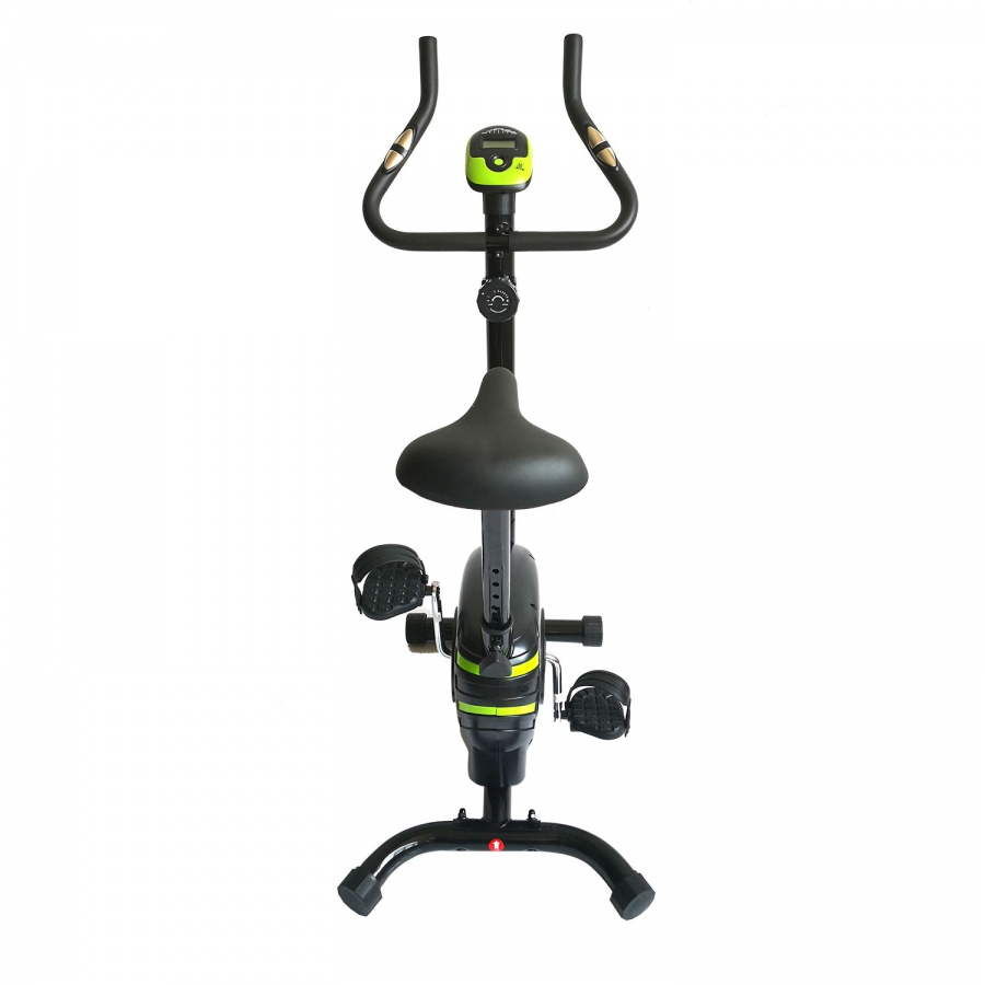 • Компактный велотренажер с вертикальной посадкой и комфортным сидением.