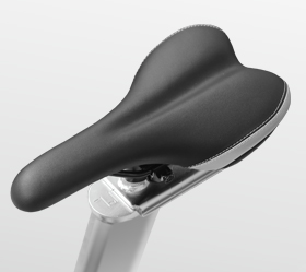 Важнейшую роль в биомеханике играет рама. Мощный стальной профиль из легированной стали с общим весом изделия 60 кг. является одним из самых тяжелых среди спин-байков. Рама надежна, устойчива, не подвержена деформации и отлично защищена порошковой краской от коррозии. Подседельный и рулевой штырь, выполненные из высокопрочного стального профиля с надежным хромированным покрытием, регулируются во всех возможных положениях и подходят для пользователей практически любого роста и веса. На них не остается царапин при смене положения сидения или руля, они долговечны, недеформируемы и абсолютно устойчивы к воздействию пота. Само сидение наполнено гелиевыми подушками, выполнено в эргономичной форме и аналогично тем сидениям, который используются на спортивных велосипедах.
